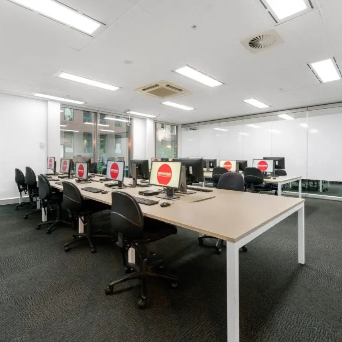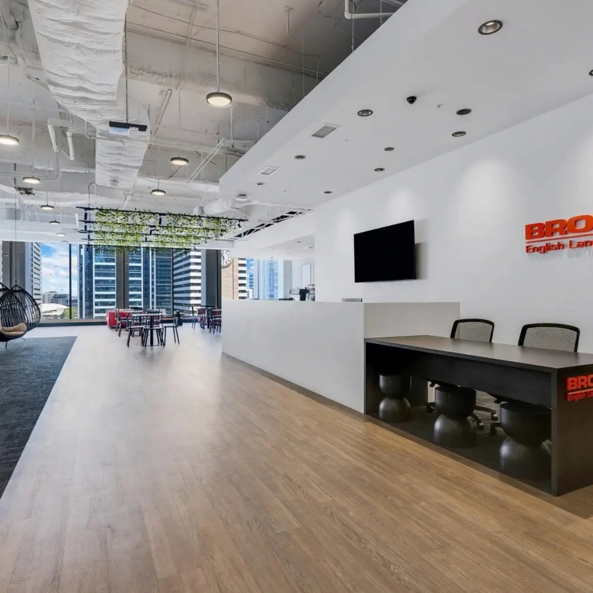โรงเรียนอยู่บนชั้น 8 ของอาคารสำนักงานในย่านธุรกิจใจกลางเมือง